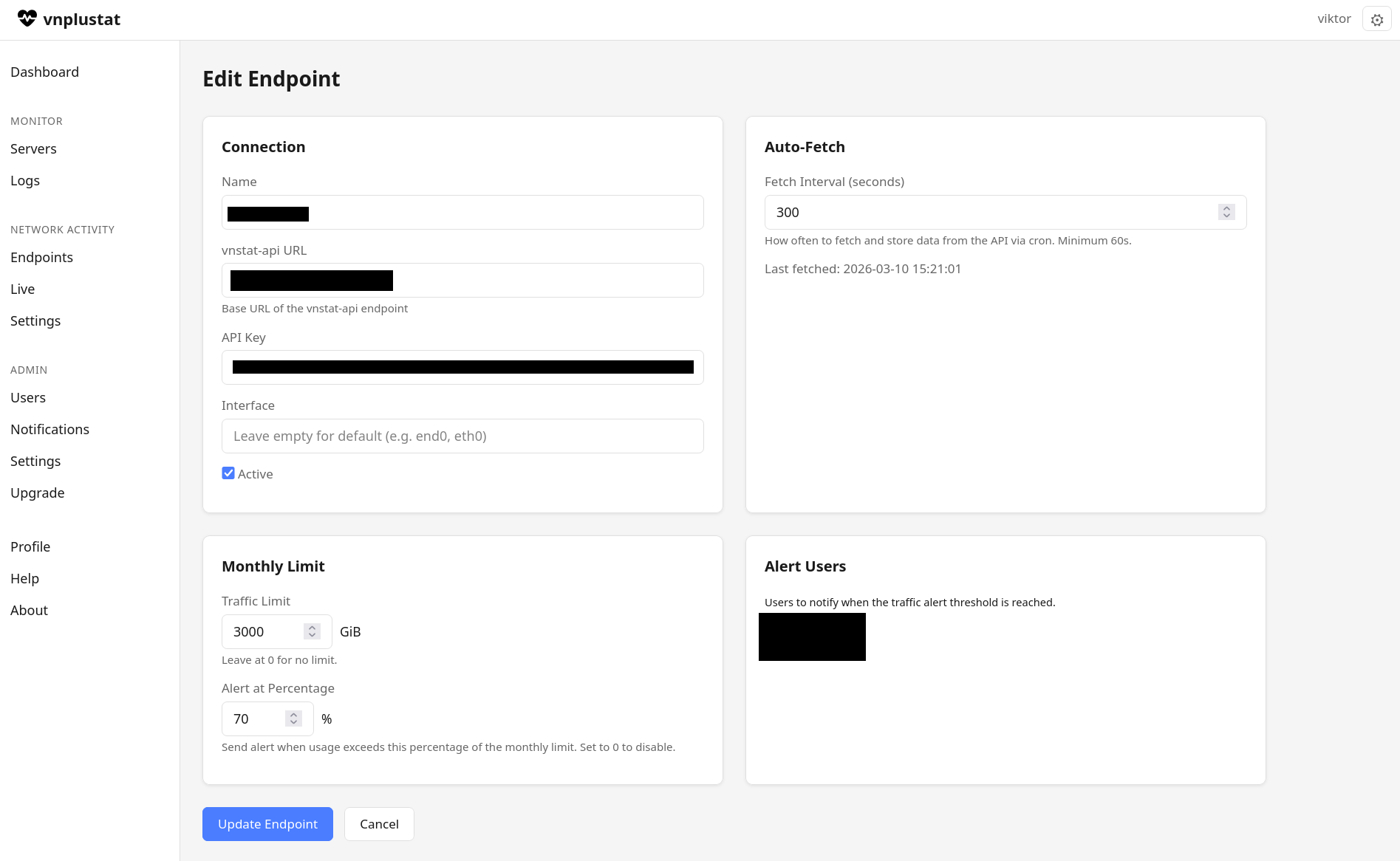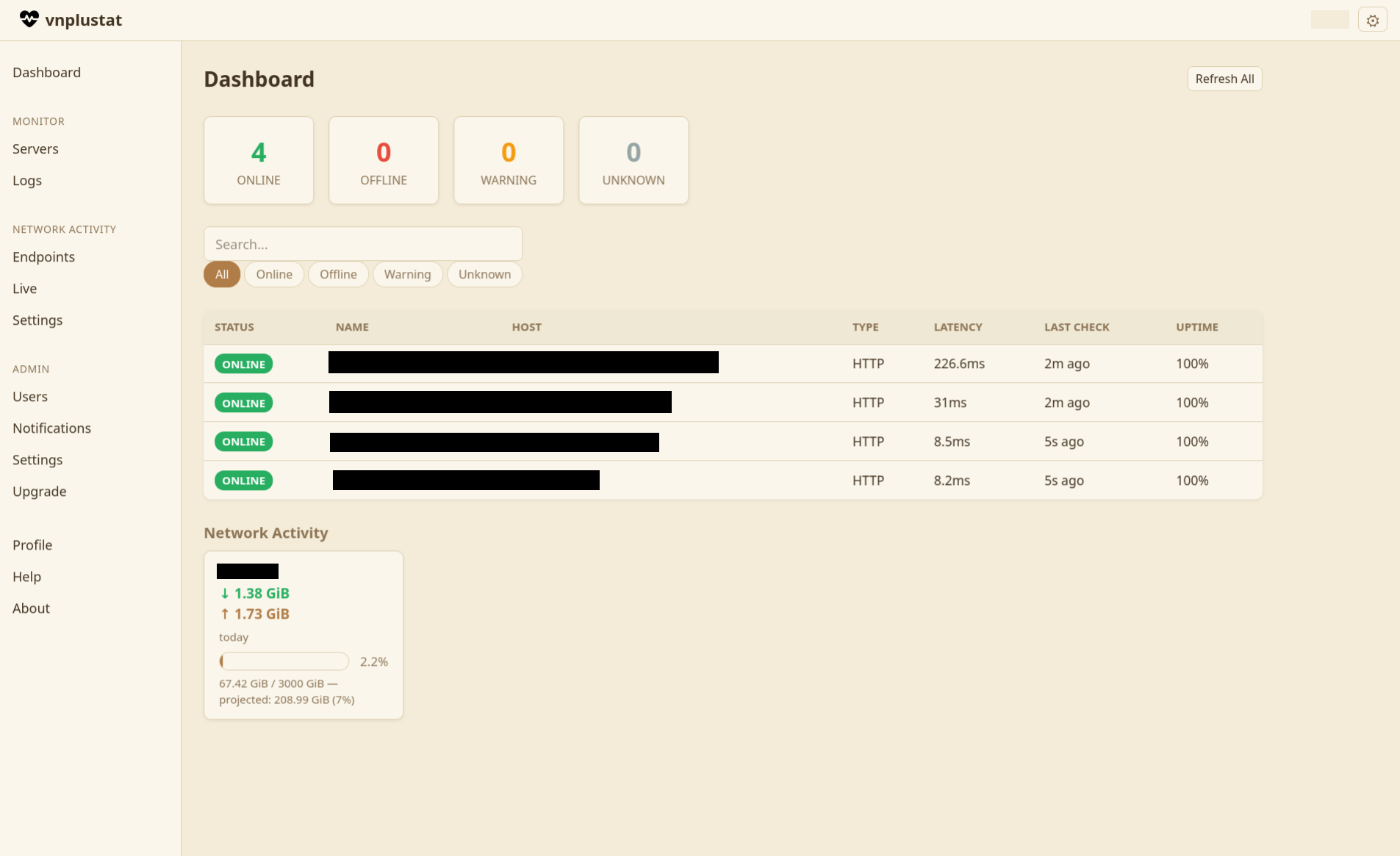 Lightweight server monitoring and network traffic tracking
